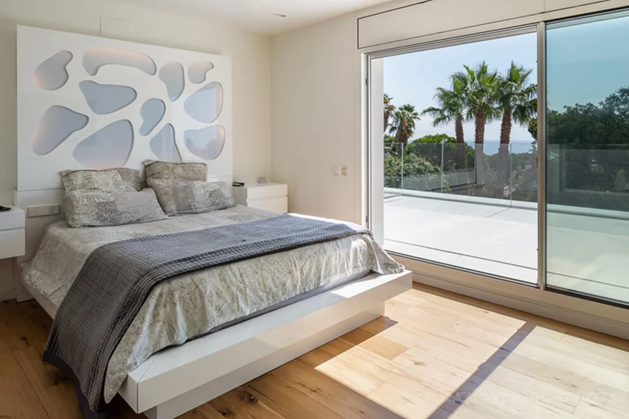 מרחב השינה הראשי כולל חדר אמבט עם ספא אישי אלגנטי וכולל מרפסת, ממנה נפרס מראה מרהיב של הים התיכון.