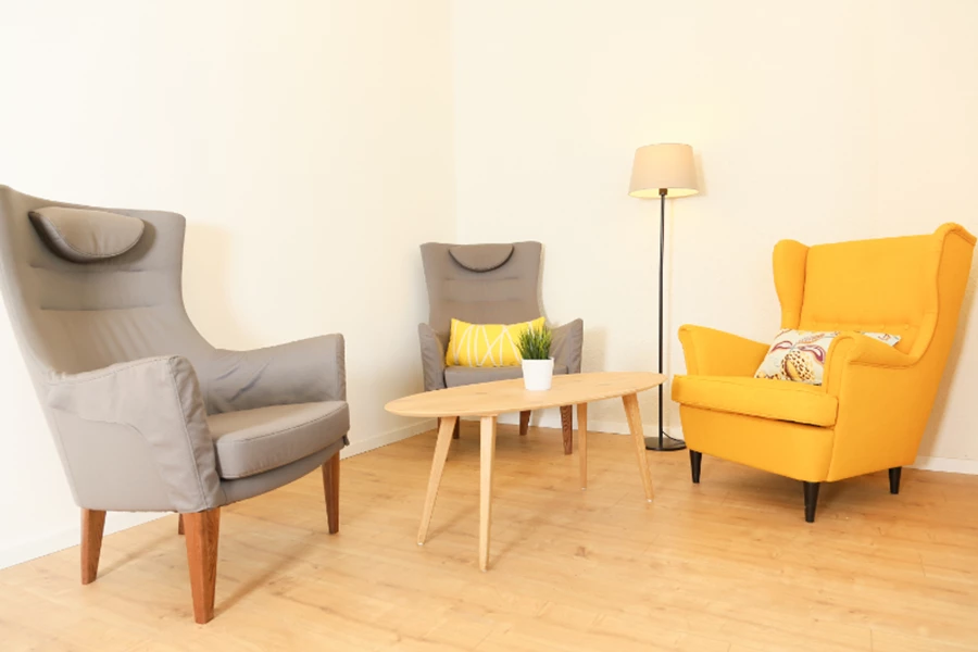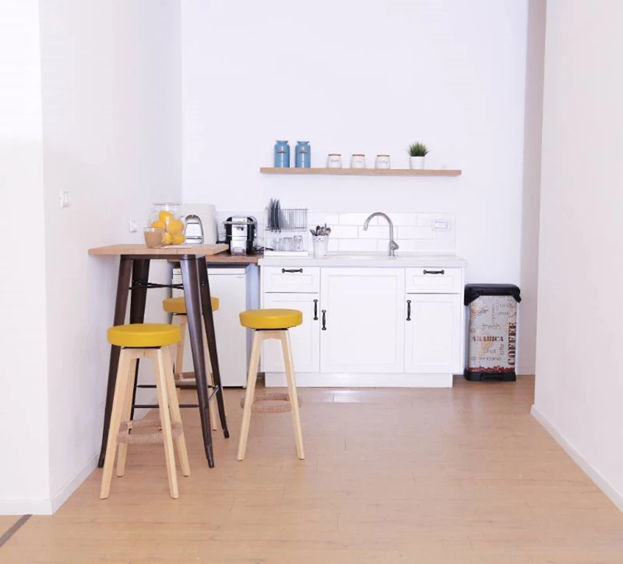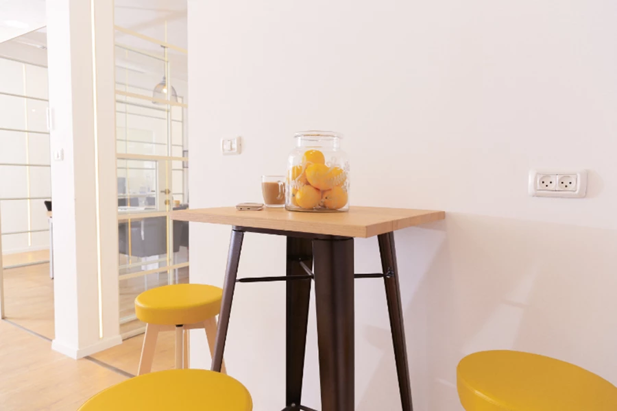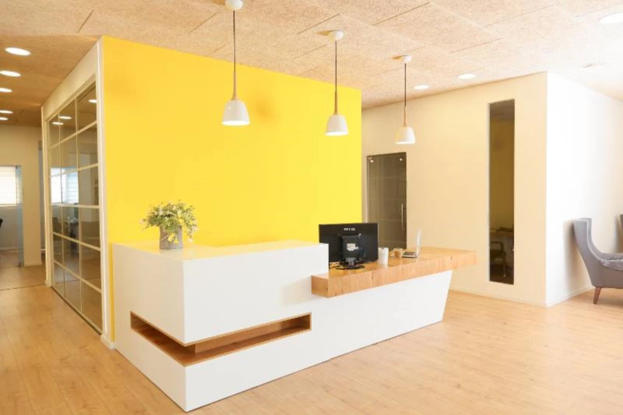 הצבע הצהוב הוכנס כמסה גדולה בגב הדלפק קבלה שעוצב ותוכנן מול נגר מקומי ומוכשר ובאלמנטים נוספים כמו כסאות בר, כורסאות וכריות.