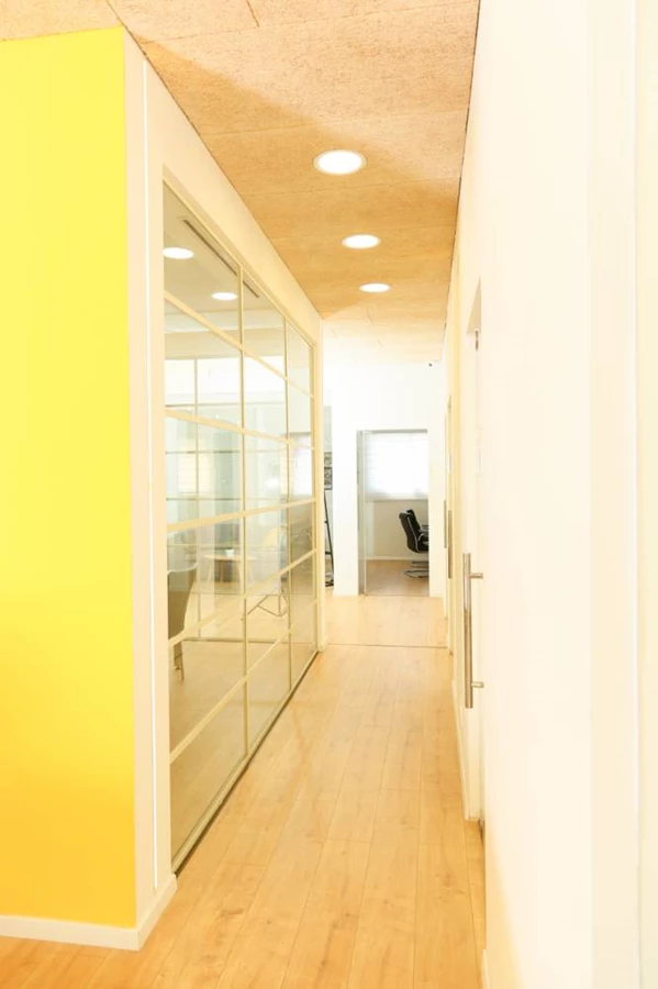 קוביה שקופה במרכז החלל המשמשת חדר ישיבות ומסביבה חדרי משרדים אשר בכל חדר סטריפים של זכוכית שקופה ודלת זכוכית. משחקי התאורה במקום משולבים בקירות ובתקרה בצורה מתחכמת היוצרת תאורה המדמה אור טבעי הנכנס מחלון, החסר בחלל.