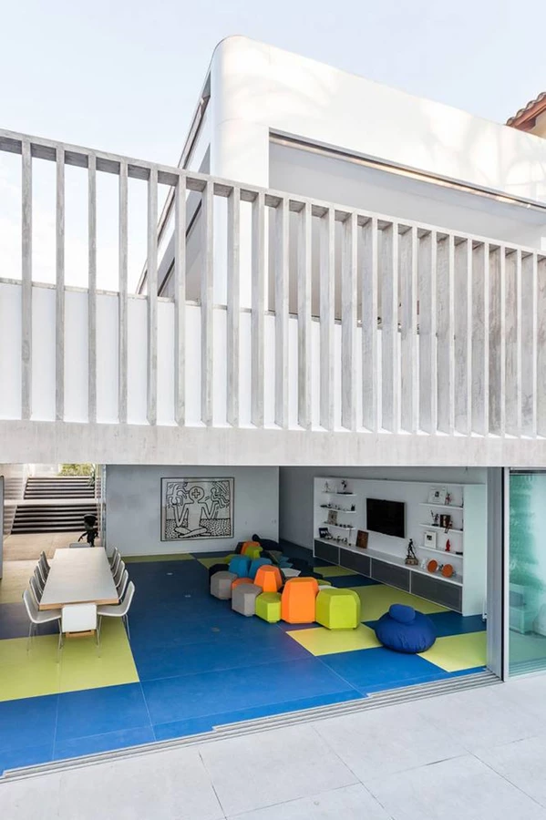 "הפרויקט נהגה ונוצר כדי להכיל שטח משחקים רחב ידיים למשפחה מתרחבת, עוצב לשמש כבית צעצועים ומשחקים של הילדים, כמו גם כמקום מפגש למסיבות ואירועים של המבוגרים. הכניסה הנפרדת אליו נפתחת עם הזמנה למשחק, וגרם מדרגות עשוי פלדת אל-חלד מוביל את הבאים לבחור בין 3 הקומות השונות זו מזו באופיין ובחזותן" אומרים האדריכלים.