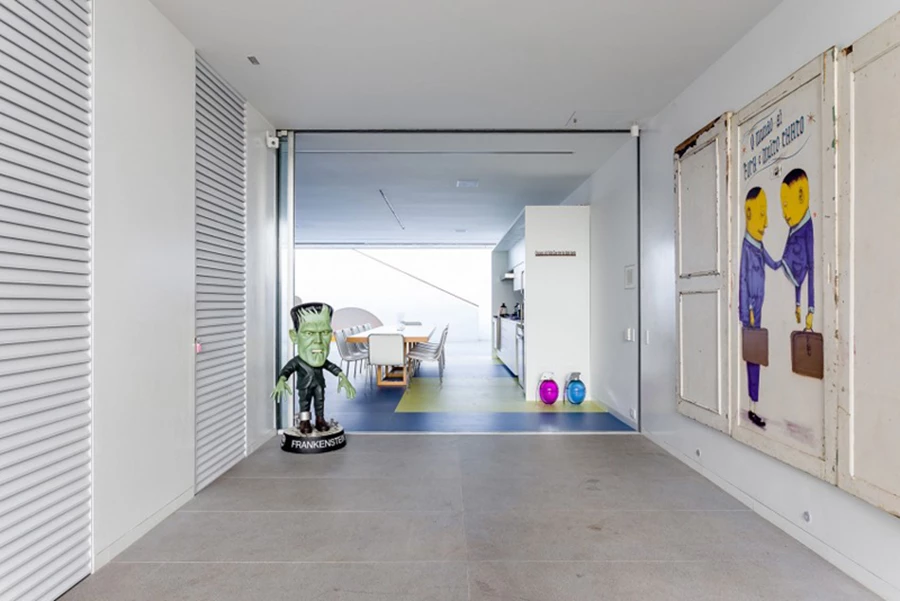 את הקומה העליונה, תכננו האדריכלים כקפסולה מטאלית המצוידת בתריס שפתיחתו נעשית בשלט רחוק " הרעיון היה ליצור חלל גמיש שיכול להשתנות בכל עת– להתרחב או להתכווץ, להיות מופרד ואינטימי או פתוח, וניתן אף לפרקו בעתיד אם יתעורר צורך בכך" מסביר צוות המפתחים. את ההשלמה לבית המגורים העליז ויוצא הדופן מספקים שער למגדל וגשר חבלים ורוד המקשרים אותו עם הבית הסמוך, כאשר עבודות של אומנים ברזילאים מוכרים טווות את אופיו העיצובי.