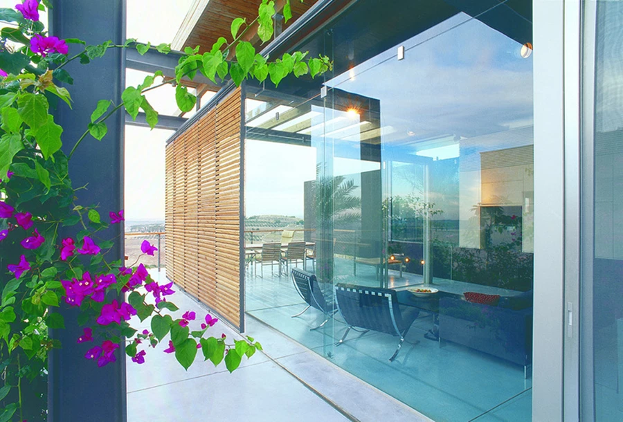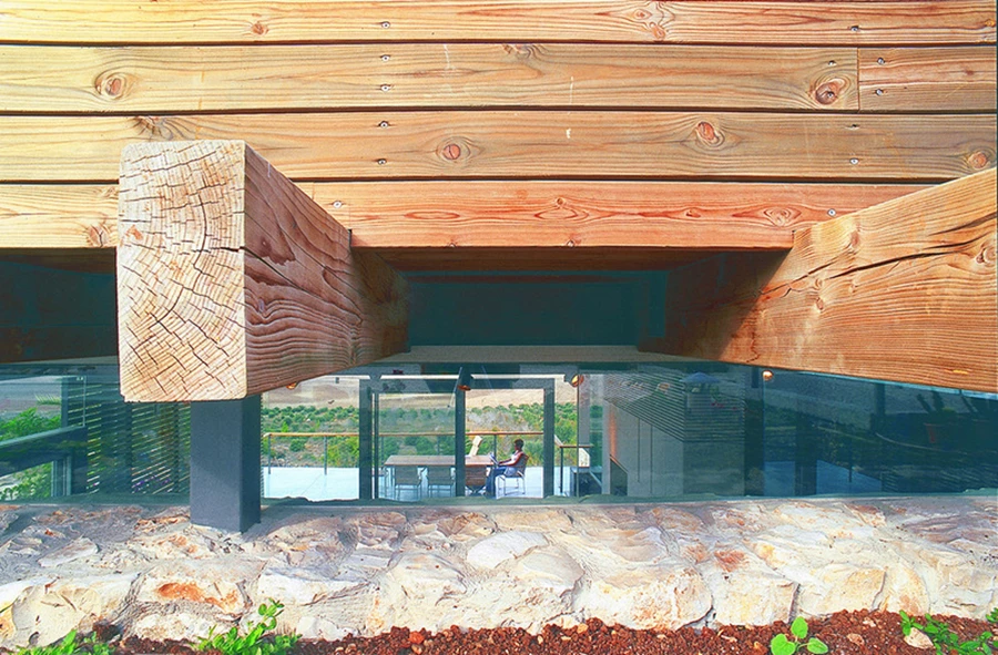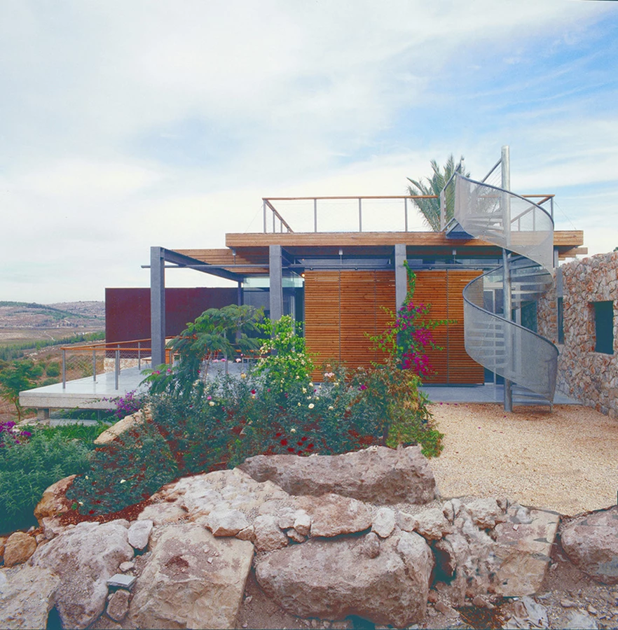 בית הטרסות בנווה שלום – הפרויקט מהווה דוגמא לתפיסה תכנונית המשלבת אלמנטים עכשוויים שמתרבתים את הטבע ונטמעים בסביבה החקלאית. במבנה זה יצרנו תחושת ביתיות על ידי שילוב קולאז'יסטי בין מרכיבי הנוף הטבעי הקיים (קירות וטרסות) לבין חומרים מקומיים (אבן) והצבתם בכפיפה אחת לצד אסתטיקה עכשווית, העושה שימוש במרכיבים ובחומרים הזרים לחלוטין לסביבה הטבעית המקומית, כגון קירות זכוכית גדולי ממדים, פלדה ורכיבים מתועשים.