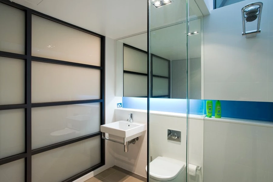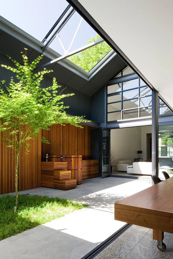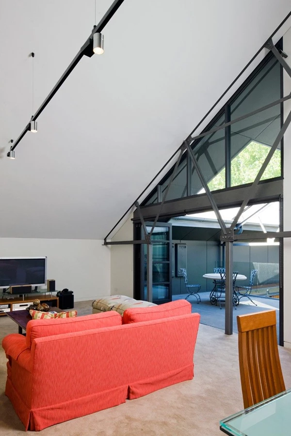 שימור לצד המצאה מחדש של "המורשת התעשייתית" הובילו את מתכנניו לעצב בית מתוחכם, מלא אלמנטים מעוררי השראה: הכניסה הראשית וחדר המדרגות נעטפו על ידי יחידת נגרות מעץ אגוז שחור, המספקת אחסון שימושי ומסתירה את יחידות מיזוג האוויר. בקומה התחתונה, בה אזור המגורים סובב סביב המטבח, תוכנן ספסל באורך 9 מטרים עשוי בטון מלוטש אשר נראה כמתקפל החוצה וצף מעל רצפת הבטון. חלל זה, המשרת את דייריו כלב הבית, מתנשא לגובה כפול המשמר אגב כך את מסגרתו של הגג המקורי, תוך יצירת אפקט חזותי מרשים.