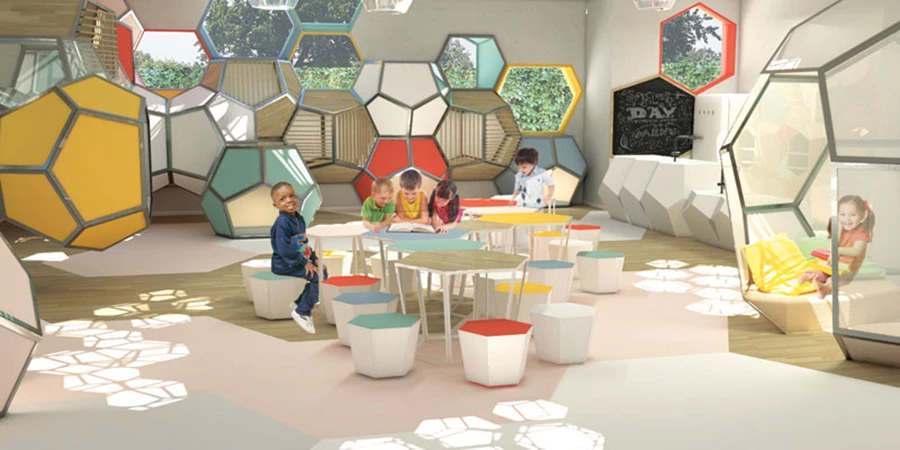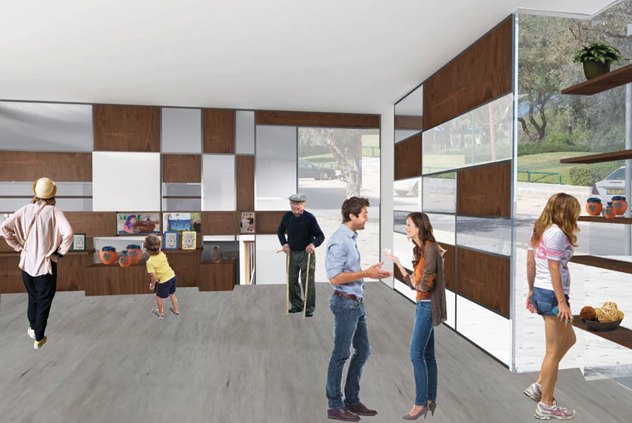 החיבור הפיסי נעשה על ידי יצירת מעבר המקשר בין הרחוב והגינה המשותפת לשני המבנים: המעבר החדש מייצר כניסה אחת לשני המבנים, דרכה נחשפים העוברים בו לפעילות בה עוסקים העיוורים והקשישים במהלך היום. החיבור האנושי נעשה על ידי חיבור המבנים ויצירת קומה נוספת שנועדה לקיום פעילות תרבותית אינטגרטיבית ביניהם לבין הקהילה.