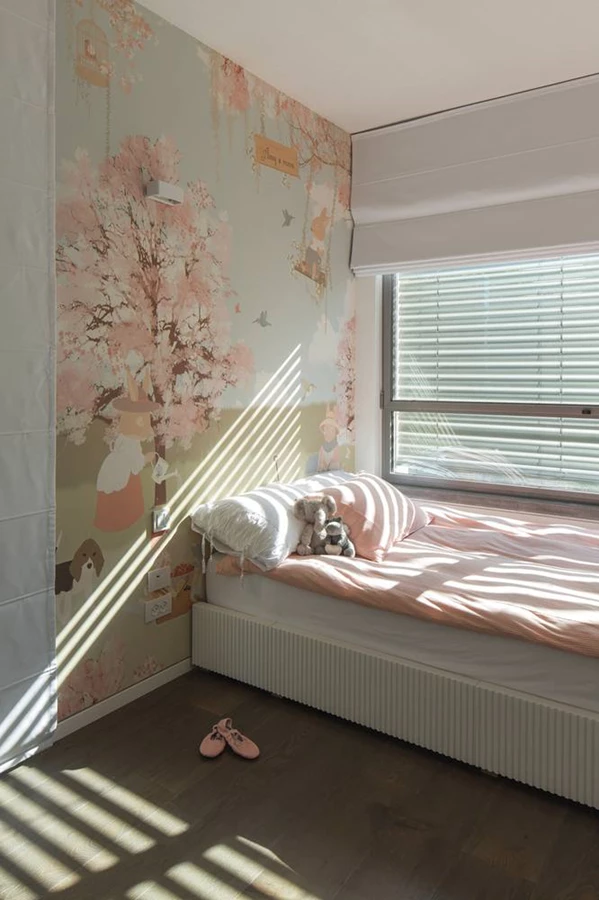 חדרי הילדים המעוצבים ברוח הקפידה של הבית משמשים, בעצם, בעיקר לצרכים פרטיים, כשינה, אחסון חפצים אישיים או הכנת שיעורים, שכן את בקשת הוריהם לייצר להם מרחב של כיף תרגמו לנצ'יאנו וסלע למרחב קסום שכל כולו נועד עבורם, נתפר ועוצב ככזה. המרחב הקסום ממוקם בקומת המרתף, וסוג של "פתיח" בחללה היא "פינת סדר" חיננית: ארבעה "עצים" מוצמדים לקיר שמשמשים כקולבים אישיים לתליית מעילים, ותחתיהם יחידת מגירות אחסון שכל אחת נושאת את שם "בעליה" כך שהסדר אכן נשמר.