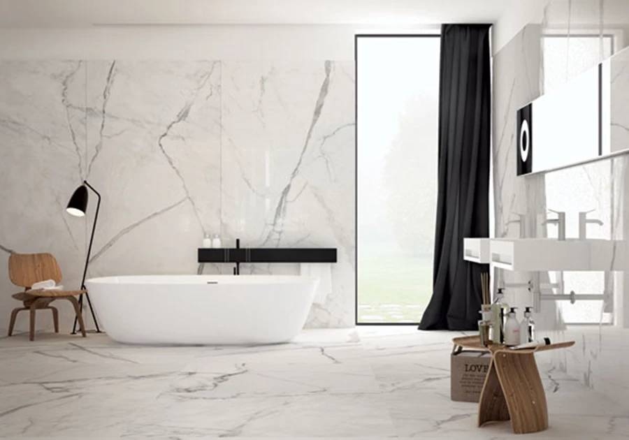 אריחי ענק עשויים חומר המחקה באופן מושלם את מראה השיש הוא אחד הטרנדים החמים היום בשוק. מדובר באריחים המגיעים במידות של 1.2X 1.2 מטרים ו- 1.2.X 2.4 מטרים, בעובי 6.5 מ"מ המאפשרים ריצוף וחיפוי, וממזערים כמעט לאפס את החיבורים בין האריחים ויוצרים בכך מראה אינסופי של משטחים רחבים. המראה המתקבל הוא מראה הומוגני, והיעדר החיבורים הרבים, מצליח להכניס הרמוניה למראה הכללי המתקבל. חיפוי חדר רחצה באריחי ענק, יעניק לחלל מראה איטלקי קלאסי ומהוקצע ויהוו אלמנט דקורטיבי בעל קו אסתטי מובחן. הכניסה לחלל הרחצה תהפוך חווייתית, ותעניק לכם בכל בוקר מחדש תחושה של כניסה לחלום שנרקם במיוחד עבורכם, כולו על טהרת העיצוב ותחושת המרחב.
