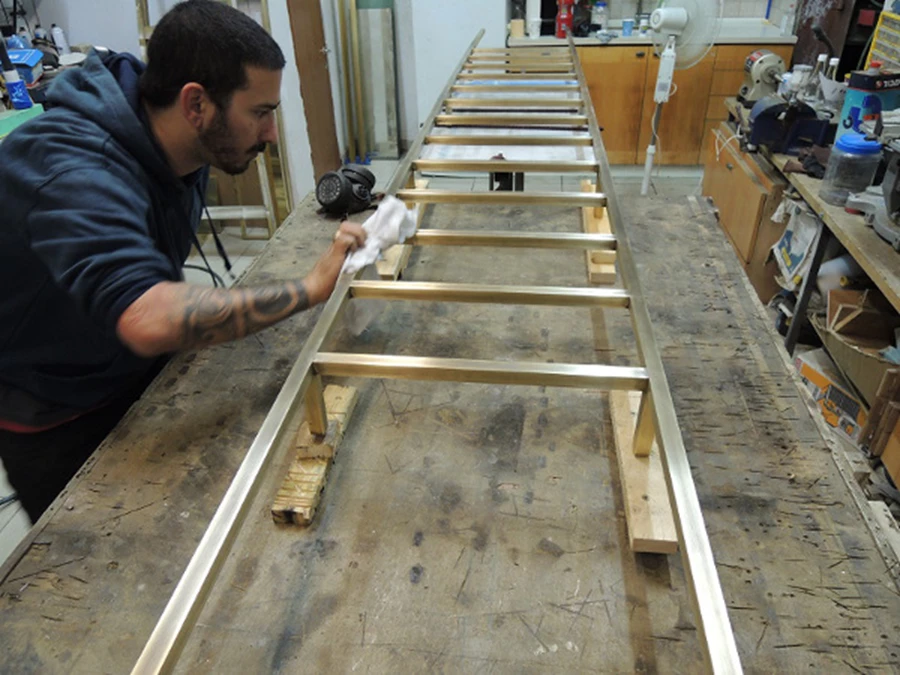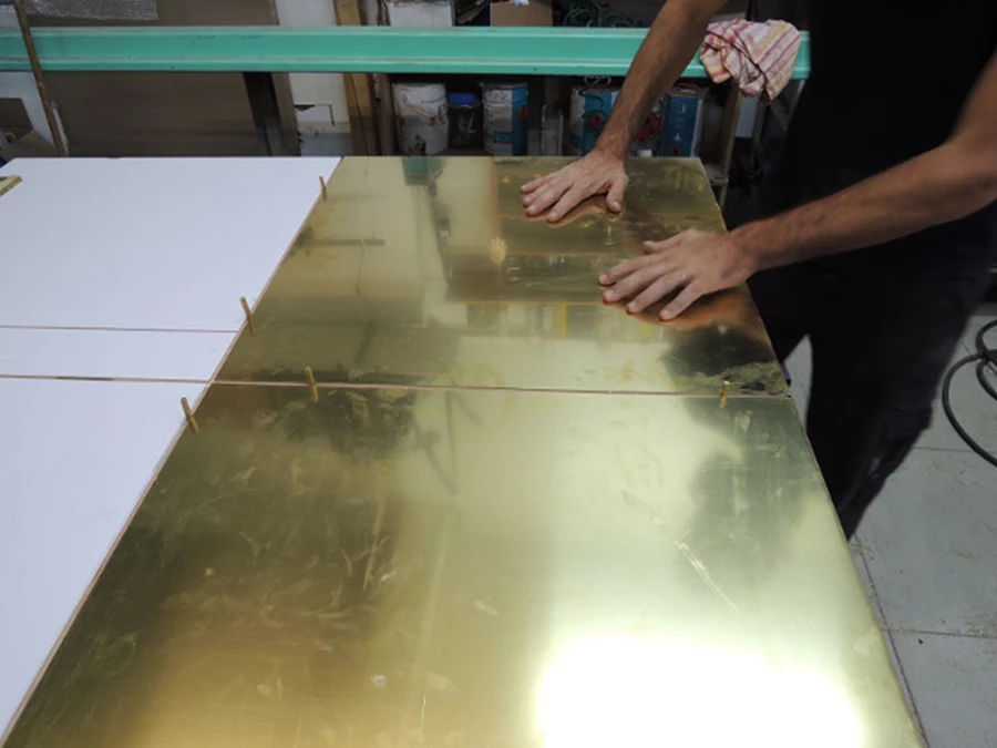 חיפוי קיר משולב פליז ונחושת.