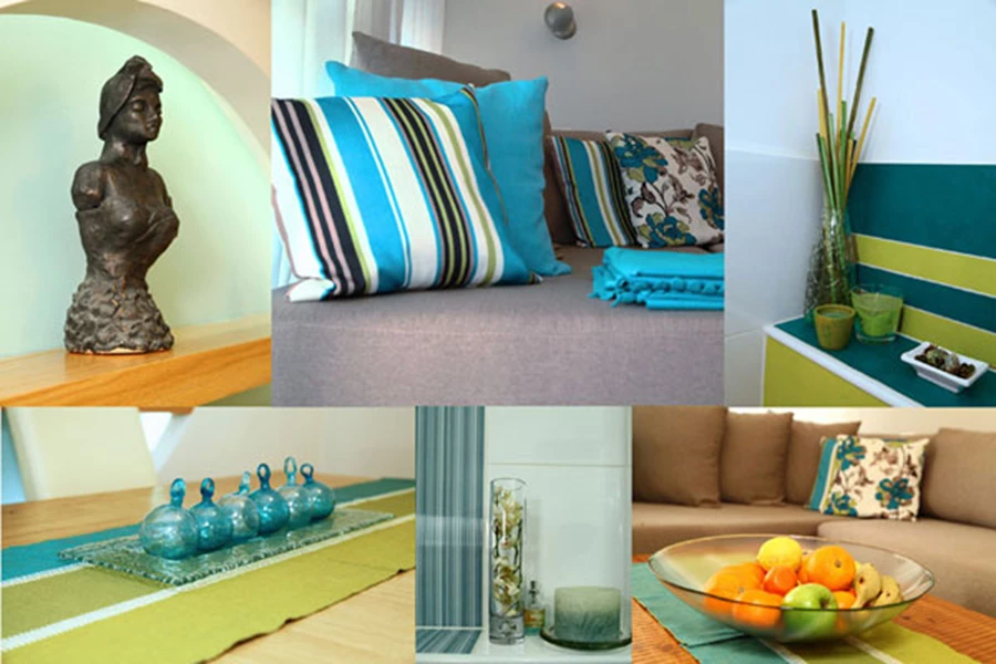 בכל החללים בבית שולבו אלמנטים שונים וחפצי נוי מהפנג שווי, כגון: קערות פירות, סחלבים, אבנים אנרגטיות, צדפים וכדומה להכנסת אנרגיות של שפע ושמחה.