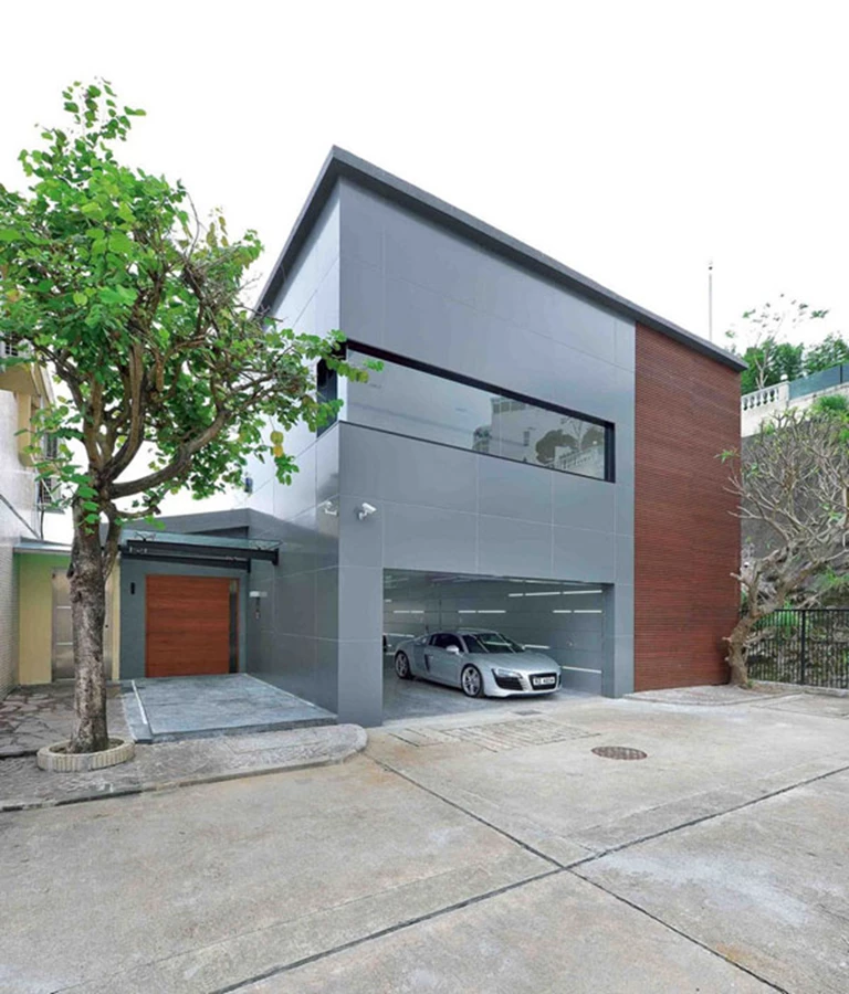 חזית המבנה יוצרת מראה מרשים בזכות החנייה ואורות ה:LED שמוסיפים מגע עתידני למבנה. עץ מייפל קטן ניטע במרכז הבית, והגג הפתוח מכניס אור טבעי לחדר העבודה שעשוי ממחיצות זכוכית. פנאלים סולריים גדולים הותקנו על הגג על מנת לספק אנרגיה טבעית לחימום הבית, לתאורה ולסוללות הגיבוי.