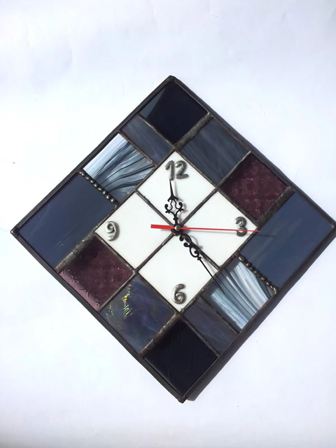 שעון קיר ויטראז של סילבינה ברנשטיין שמשלב בין גוונים של אפור וסגול