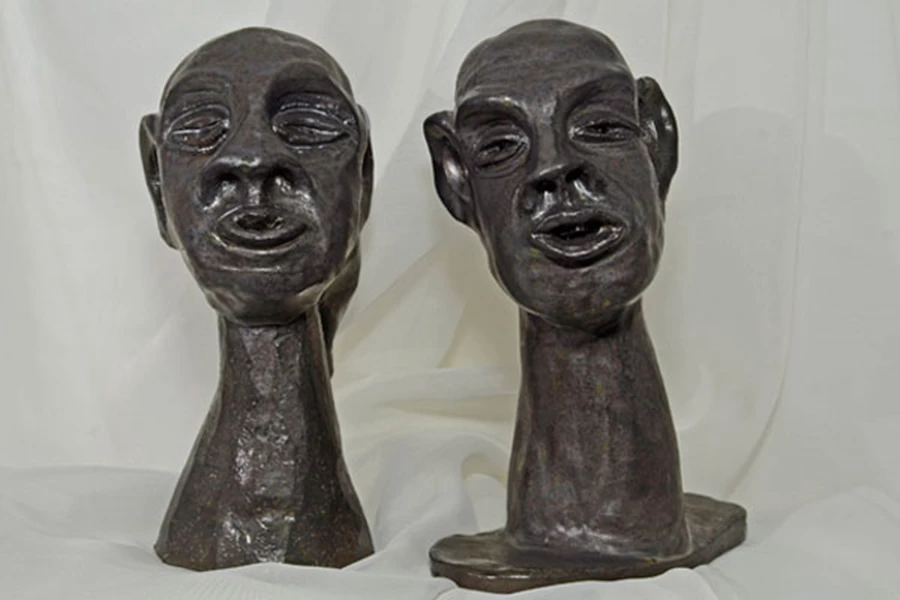 זוג אפריקאים מחימר של רינת קדרון צבועים בגלזורה ברונזה