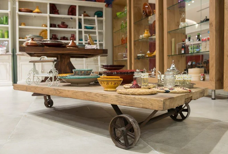אלמנטים נוספים בחלל החנות הם: אלמנט נגרות מורכב בשילוב של מספר חומרי גמר וסוגי עץ כולל משטח קוריאן, ושילוב ריהוט עץ מיובא בעל מראה אותנטי לצד ריהוט בעיצוב לפי דרישה (נגרות אומן- על פי תכנון מפורט).