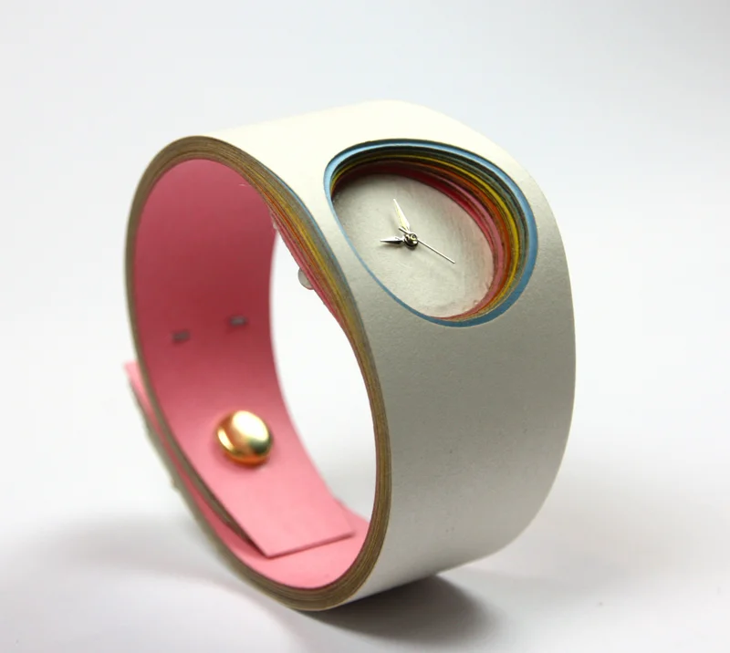 פרויקט Layers של עידן נויברג מציג גישה תכנונית, מחקרית וארעית לשדה השעונים העכשווי, בעיצוב פריט מקורי המתכתב עם ערכי עידן הצריכה בהיבט של חדשנות, התכלות ואסתטיקה. "כחומר עבודה בחרתי בנייר כיוון שהוא חומר מתכלה ובעל אסתטיקה מגוונת", מדגיש המעצב ומוסיף כי "התהליך העיצובי נשאר נאמן לערכים אלו ודבק באורנמנטיקה משלימה התומכת בשפת העיצוב של השעון". חומרים מוכרים, כמו נייר בחיתוך לייזר, סיכות שידוך ומנגנון, מושאלים מעולם תרבות הצריכה ההמונית ומתורגמים לפרטים הקטנים המרכיבים מחדש מוצר 'פופ-אפ' יומיומי עם ערך מוסף בסגנון 'שכבות'.