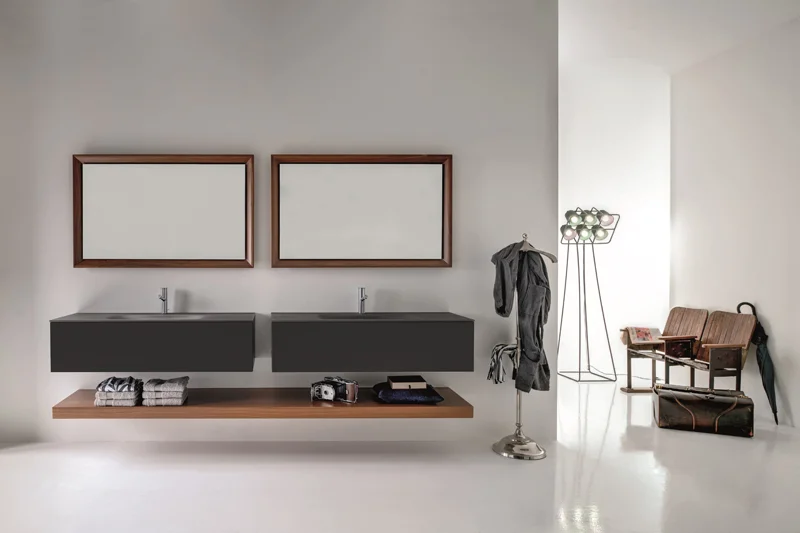 קולקציית זכוכית הסאטן מבית Falper האיטלקי- קולקציה אלגנטית, אשר לצד כיורים אסתטיים משלבת מערכת מודולארית וגמישה, הכוללת את כל הדרוש לאחסון פריטים אינטימיים בחדר הרחצה. הרעיון המרכזי העומד בבסיס הקולקציה, שהתגבשה כדיאלוג בין משחק צורני וצרכי העידן החדש, הינו שימוש יצירתי בזכוכית המניב טווח רחב וגמיש של גדלים, צבעים וגימורים ומאפשר נוחות בהתאמה אישית לחלל, לצרכים אינדיבידואלים ולהעדפות הטעם. הקולקציה מוצעת בגווני אפור מעושן- ו/או שחור מבריק.