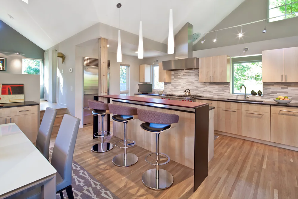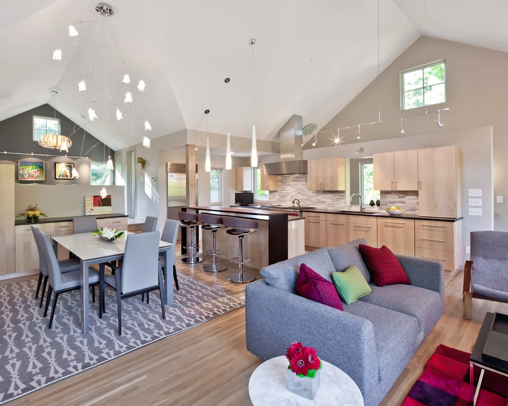 הסלון, פינת האוכל והמטבח עוצבו כיחידה אחת פונקציונלית.