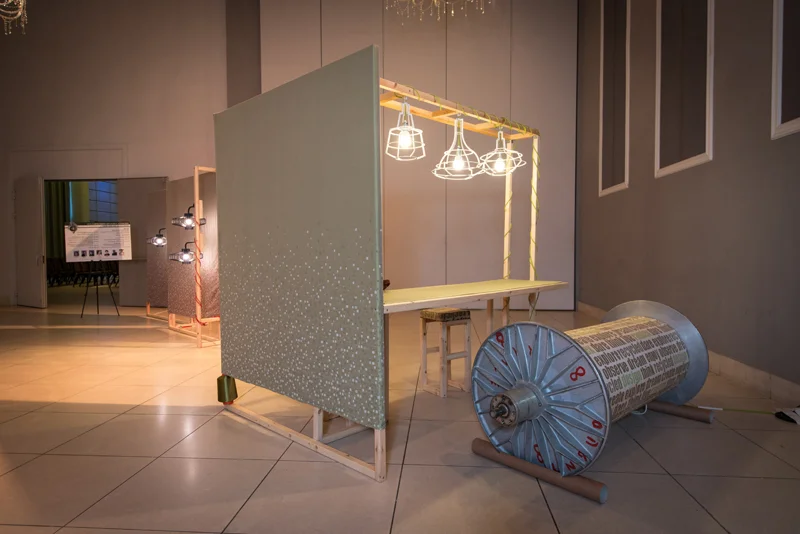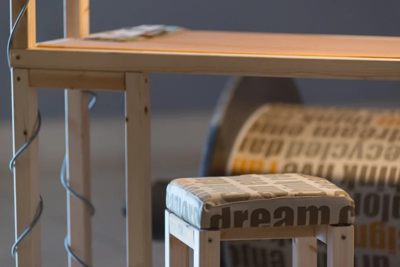 המיצב משלב מסגרות עשויות עץ פשוט, בדים, וגופי תאורה מתכתיים המייצרים כעין מתאר של אבנים יקרות. הבדים בהם נעשה שימוש ארוגים על טהרת חוטי פוליאסטר ממוחזרים, שמקורם בפסולת תעשיית ובפסולת של מוצרי צריכה (Pet Bottles).