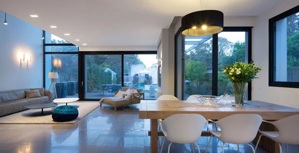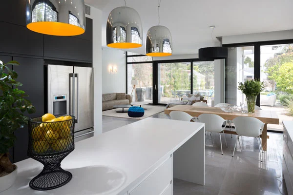 גופי תאורה המותקנים במיקומים ממוקדים מייצרים קצב שמלווה את קווי החלל ומעצים את זרימתו