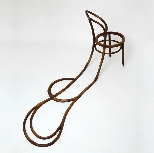Pablo Reinoso www.pabloreinoso.com האמן הרב תחומי pablo reinoso חוקר את מערכת היחסים בין האובייקטים לסביבתם מתוך שכפול, הכפלה, עיוות, הארכה, מתיחה, הצללה ומניפולציה בפריטי ריהוט יומיומיים. סדרת Thonet של האמן הארגנטינאי, מתכתבת עם המגמה האורגנית של התקופה בת זמננו ומתחקה אחר מיכאל טונה, נציג זרם האר-נובו שבווינה וחלוץ ייצור הריהוט התעשייתי בטכנולוגית כיפוף עץ ואדים. בהתייחסותו לכסא האייקוני בוחן reinoso את גבולות החומר, מפשיט את פריט הישיבה מסממני הייצור ההמוני ומעניק פרשנות חדשה לאחד מפריטי העיצוב הפופולאריים בתולדות העיצוב המודרני. בוורסיה אמנותית ומפוסלת הנאחזת ומתפשטת בחלל, כמו בסדרת הספסלים spaghetti , חוזר פריט הישיבה אל השורשים, הייצור הידני ומסורת הקראפט, ואגב כך מכניס למרחב הסטטי, לכאורה, את האובייקט האינסופי.
