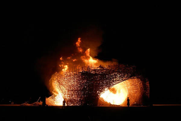 ארנה קווינזה, אמן ומעצב בלגי המתרגם מסרים חברתיים ליצירות פרובוקטיביות, עיצב מיצג מרהיב אשר נבנה ונשרף במסגרת פסטיבל BURNING MAN במדבר נוודה שבארה"ב. הפסל הסביבתי המדהים בגודלו עשוי ממספר עצום של כפיסי עץ המרכיבים את שלד המבנה, כשכל אחד מאלפי החלקים מסמל אינדיבידואל אחר בכפר הגלובלי. קווינזה, כוכב עולה בסצנת האמנות הקונספטואלית, עיצב את המבנה כחלל מחסה ארעי, חסר זמן ומקום, המסמל מרחב היפותטי -אוטופי לחופש, שיתופיות, יצירתיות חסרת גבולות וגילוי מחדש של מהות החיים עם ערך חברתי מוסף.