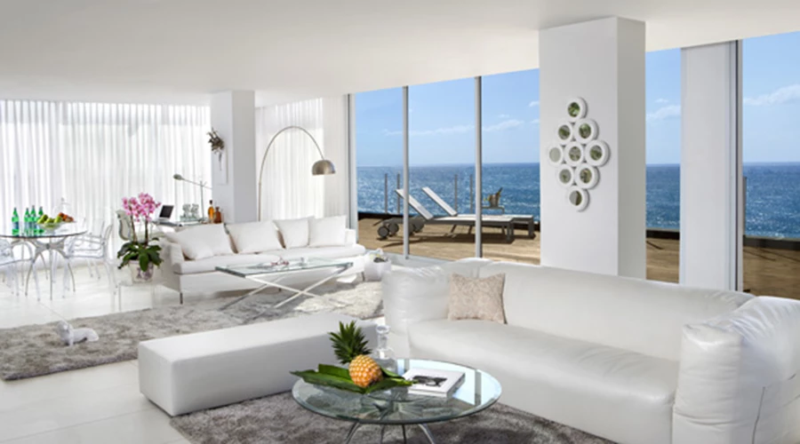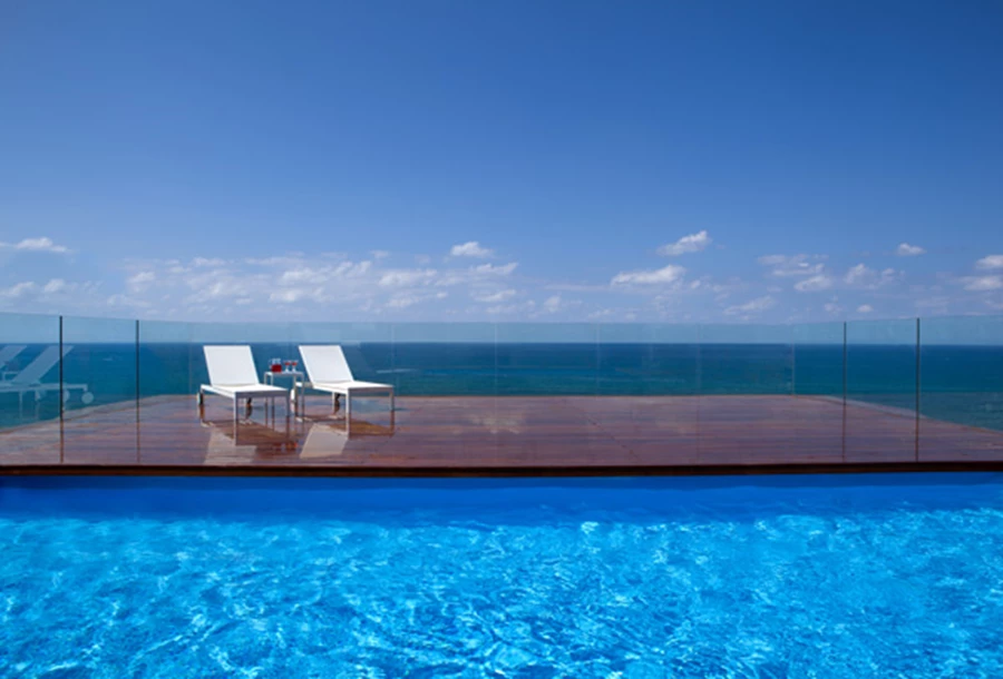 סוויטת היהלום מעוצבת בקו נקי ומודרני על טהרת הגון הלבן. מעקות המרפסות עשויים זכוכית שקופה ומינימליסטית, כשהם מאפשרים קבלת פרספקטיבות ארוכות טווח מכל אזורי הסוויטה לנופם של הים התיכון והעיר תל אביב, המשרה את קסמו בחללה ומעצים את חוויית השהיה בה.