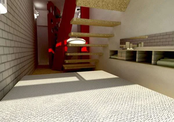 איזור השינה, מקבל את נוף הים, מעליו איזור השקט, מורכב ממערכת שכיבה/ ישיבה אשר מקבלת את נוף השמיים, איזור הרחצה מוגדר ע"י לוחות שבאופן סידורם, יוצרים חריצים שמהם ניתן לראות את השמיים תוך כדי הרחצה וגם אותה להפוך למדיטטיבית.