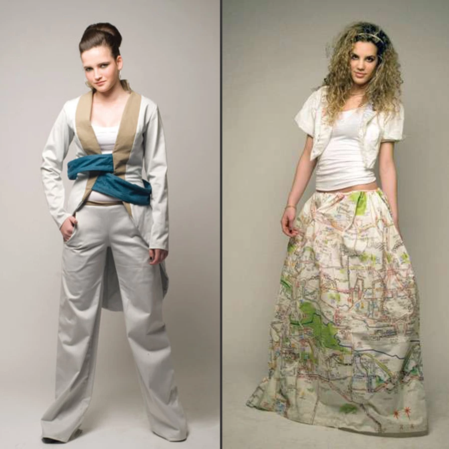תל אביב על המפה שילוב בין מאפייני העיר הלבנה לבין הצפיפות והעומס העוטפים אותה כיום. מפת העיר שמופיעה על החצאית משקפת את התפתחותה והפיכתה לעיר צפופה, והחולצה מסמלת את תוארה כעיר לבנה. עיצוב: עינת כהן, (דוגמנית: מעיין). סגנון הבאוהאוס של תל אביב סגנון הבאוהאוס, על קווי הישרים, הגיאומטריה הנקייה והשילובים המעוגלים, היווה השראה לפריטים במראה "ארכיטקטוני". חליפה בקו נקי עם שילובים מעוגלים ברצועות ואזכור לעיר הלבנה בגון המכנסיים. (דוגמנית: מיכל חיות), ומערכת של חולצה וחצאית המוסיפה להשראה הבאוהאוסית טאצ' אופנתי (דוגמנית: מעיין). עיצוב: גלי שטרנגר שדרות בתל אביב הומאז' לשדרות הותיקות של העיר, שלכל אחת מהן מאפיינים משלה. בהשראת הברון שעל שמו קרויה השדרה וקשרי הממון העולים מכך, תורגמו שדרות רוטשילד לשמלה זהובה עתירת בד נשפך המסמל את העושר סביב השדרה בה מרוכזות חברות פיננסים (דוגמנית:רשף רפלסי). חמישה חלקי בד רחבים המחוברים זה לזה באמצעות רוכסנים מייצגים חמישה רחובות החוצים את שדרות נורדאו (דוגמנית: מעיין). עיצוב: נורית הלוי יעקב אגם פסלו של האמן יעקב אגם, המשלב אש, מים וקול ומוצב מאז 1986 בכיכר דיזנגוף, היווה מקור השראה לעיצוב דגם שחיתוכיו המקוריים מגלמים את האמנות הקינטית. עיצוב: אדית הלפרין (דוגמנית: שירלי שמש) הומאז' לשדרות הותיקות של העיר, שלכל אחת מהן מאפיינים משלה. בהשראת הברון שעל שמו קרויה השדרה וקשרי הממון העולים מכך, תורגמו שדרות רוטשילד לשמלה זהובה עתירת בד נשפך המסמל את העושר סביב השדרה בה מרוכזות חברות פיננסים (דוגמנית:רשף רפלסי). חמישה חלקי בד רחבים המחוברים זה לזה באמצעות רוכסנים מייצגים חמישה רחובות החוצים את שדרות נורדאו (דוגמנית: מעיין). עיצוב: נורית הלוי יעקב אגם פסלו של האמן יעקב אגם, המשלב אש, מים וקול ומוצב מאז 1986 בכיכר דיזנגוף, היווה מקור השראה לעיצוב דגם שחיתוכיו המקוריים מגלמים את האמנות הקינטית. עיצוב: אדית הלפרין (דוגמנית: שירלי שמש)