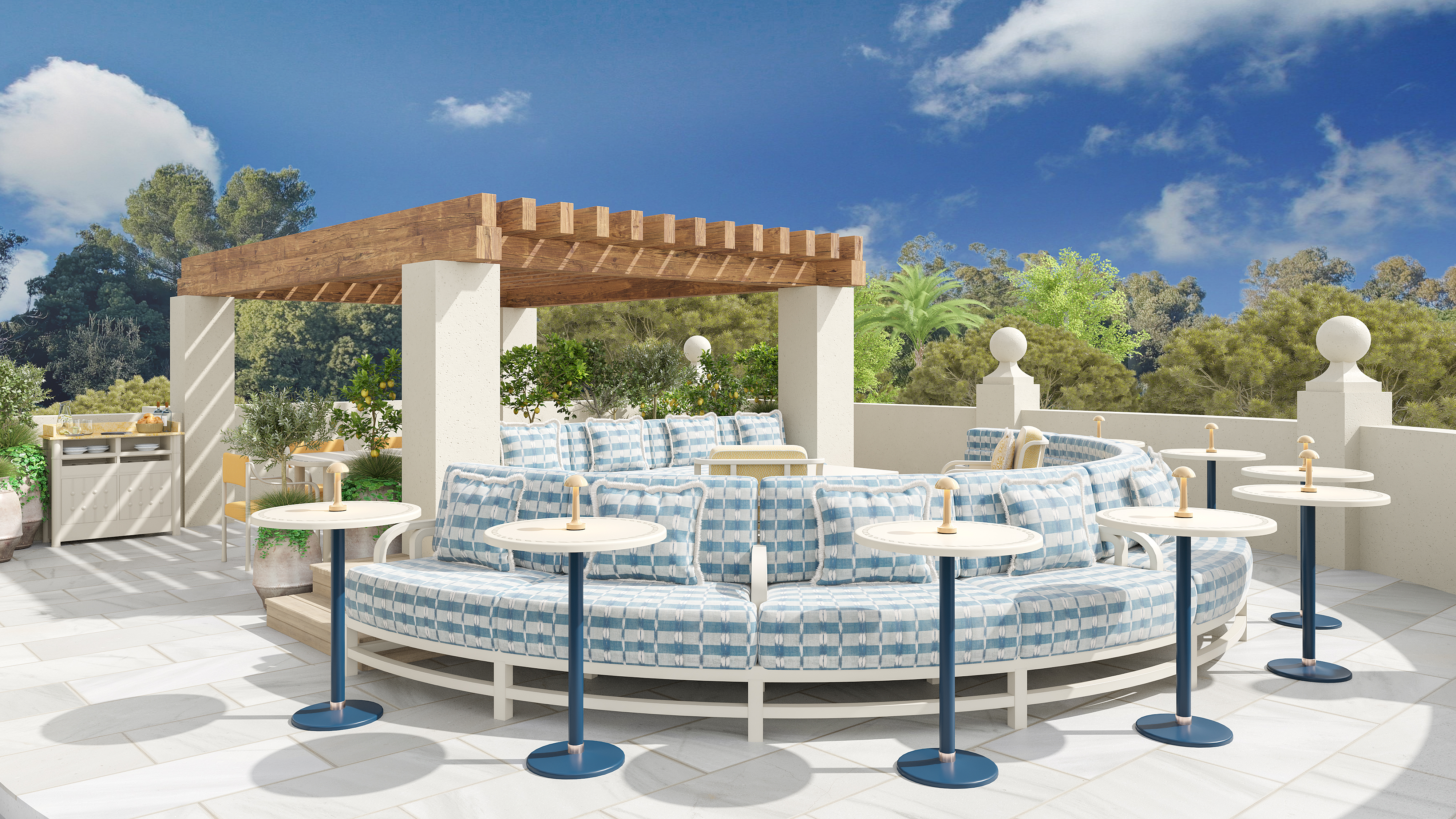 גג המסעדה, המשמש בר פנורמי, מציע נוף על כל מפרץ סנט טרופה, ותוכנן כמקום "לראות בלי להיראות". הוא פתוח לארוחות צהריים רגועות, אפריטיפים בשקיעה וקוקטיילים בערב.