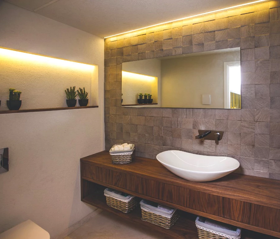 אלומות האור שבוקעות מתוך גופי התאורה המוטמעים הן רכות יותר, משום שהאור מתפזר באדוות שיוצרות אווירה נינוחה ומרגיעה.