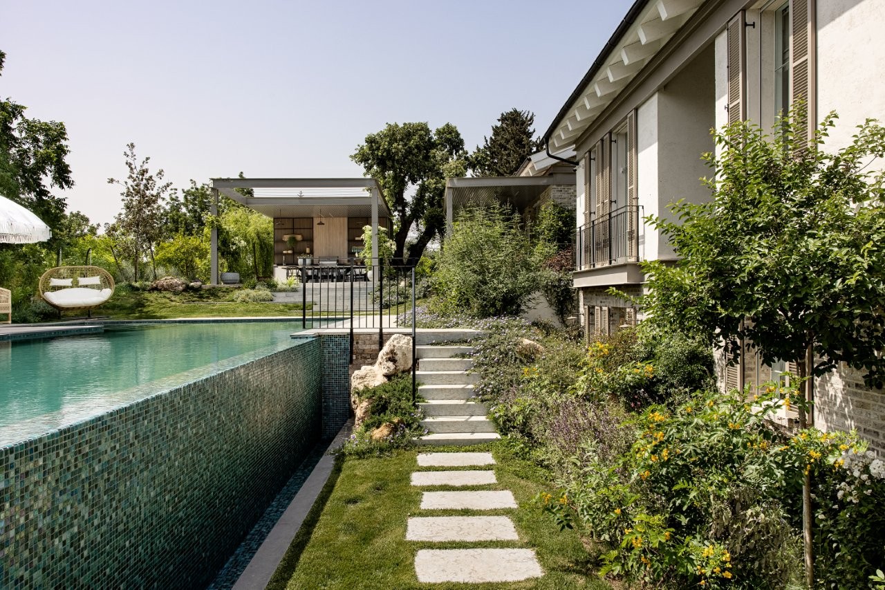 אחד האלמנטים המשמעותיים ביצירת התחושה הכפרית הוא האור. בתכנון נכון, האור הטבעי מלווה את הבית לאורך כל שעות היום דרך פתחים גדולים, ויטרינות רחבות וקשר ישיר בין החללים הציבוריים לגינה. כך נוצרת חוויית מגורים פתוחה, אוורירית ורכה יותר. החוץ הופך לחלק בלתי נפרד מהבית: פינות ישיבה מוצלות, מטבחי חוץ, אזורי אירוח ובריכות אינטימיות. כולם יחד מייצרים המשכיות טבעית בין הפנים לנוף שסביבו.