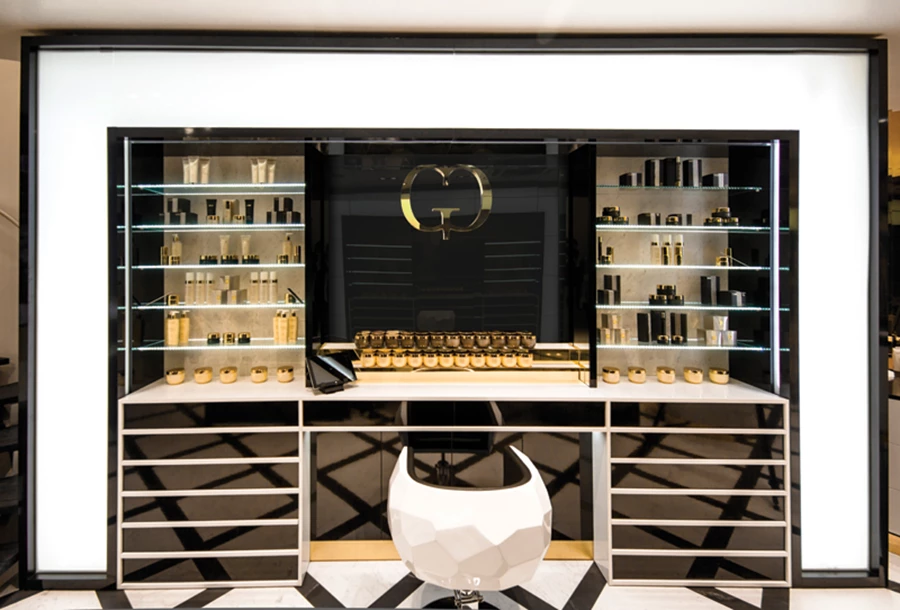 מי שמכיר את "הוהה שטרסה" בעיר קלן, גרמניה, מדרחוב הומה אדם משופע בחנויות קורצות של מותגים נחשקים, מבין ויודע עד כמה הנכחת חנות במקום היא בבחינת משימה של ממש. עם משימה מסוג זה נדרש להתמודד המעצב אורון מילשטיין, כשהופקד בידיו פרויקט עיצובה של חנות השייכת לרשת GOLD ELEMENTS- רשת בינלאומית של מותג קוסמטיקה. "עם 'שכנים' כמו הרמס, בולגרי, או לואי ויטון, האתגר היה 'ליישר קו' עם היוקרה המאפיינת אותם וליצור מופע אסתטי שאינו נופל מהם. כזה שיגרה את העוברים ושבים להיכנס פנימה ויחשוף אותם לחוויית חלל שתזמין אותם להישאר במקום ולבחון את המוצע בו" מספר מילשטיין על התהליך שמרביתו התנהל בשלט רחוק.