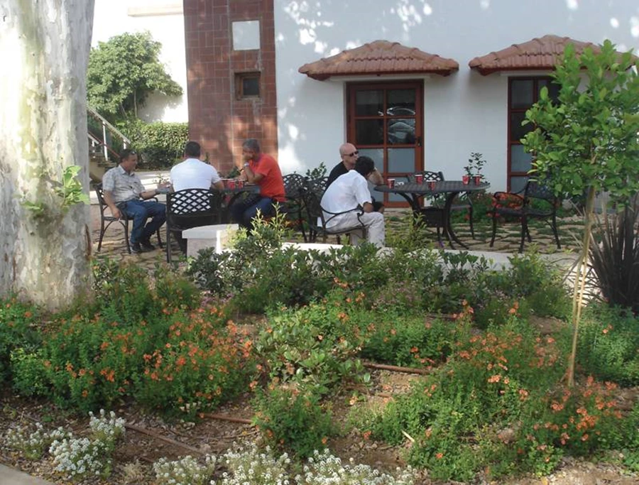 גן קטן עוטף בכניסה ראשת של בית מלון פסטורל- כפר בלום. משמשת את האורחים בזמן המתנה