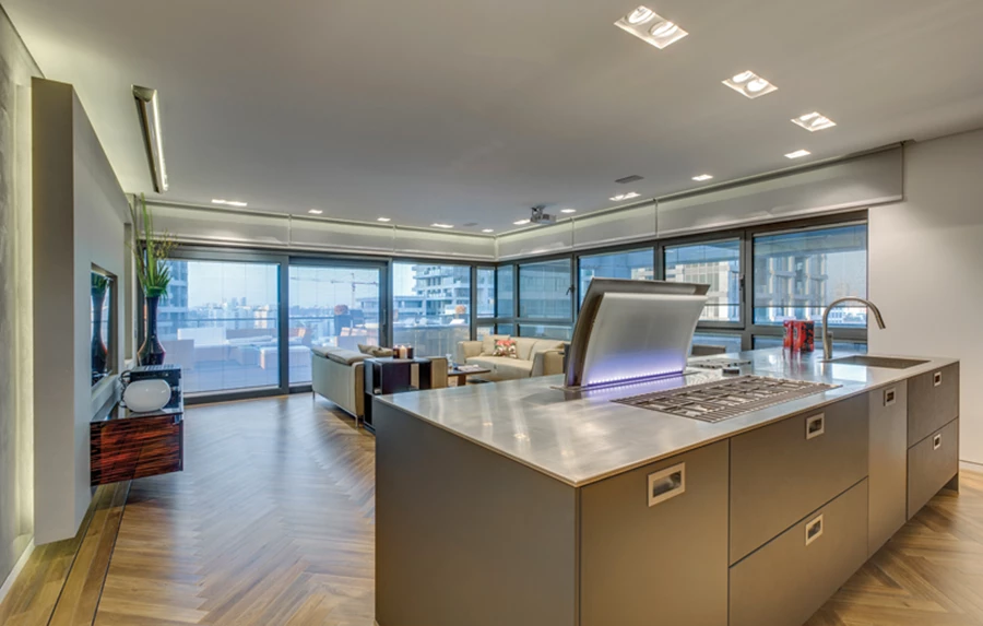 נוף אורבאני הנשקף מהדירה השוכנת במגדל מגורים גבוה בתל אביב היווה השראה לשפת העיצוב שגיבשה עבורה האדריכלית מלי מנדל: שילוב של מראה קלאסי ורוח מודרנית-עכשווית