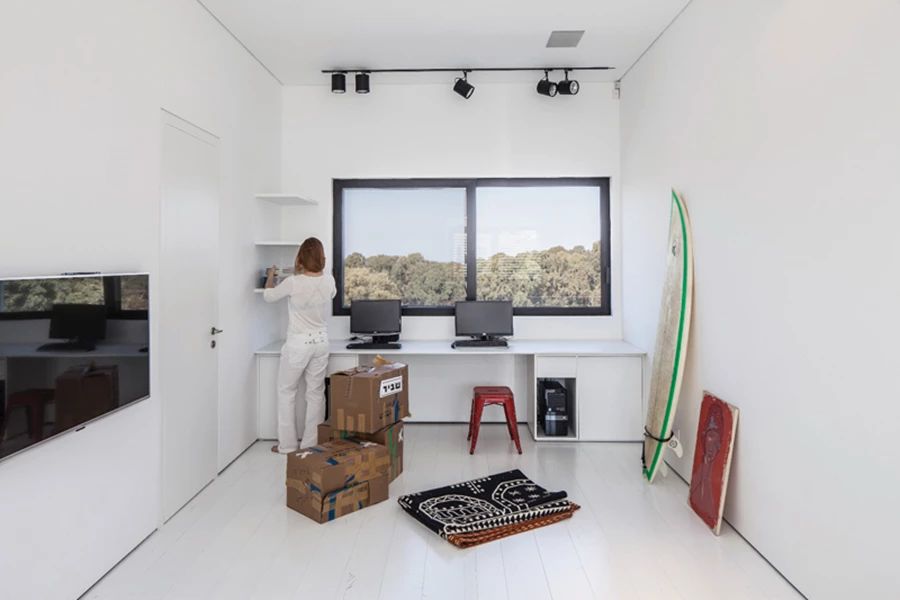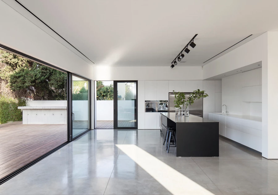 מעטפתו הנקייה של הבית שתכנן סטודיו לוי חמיצר כמענה לבקשת דיירים שוחרי מינימליזם, מגלמת גם את המתרחש בתוכו פנימה: צבעוניות מונוכרומאטית, צמצום חומרי, ואור יום המהווה חומר לכל דבר מייצרים חלל תמציתי ואפילו זני משהו
