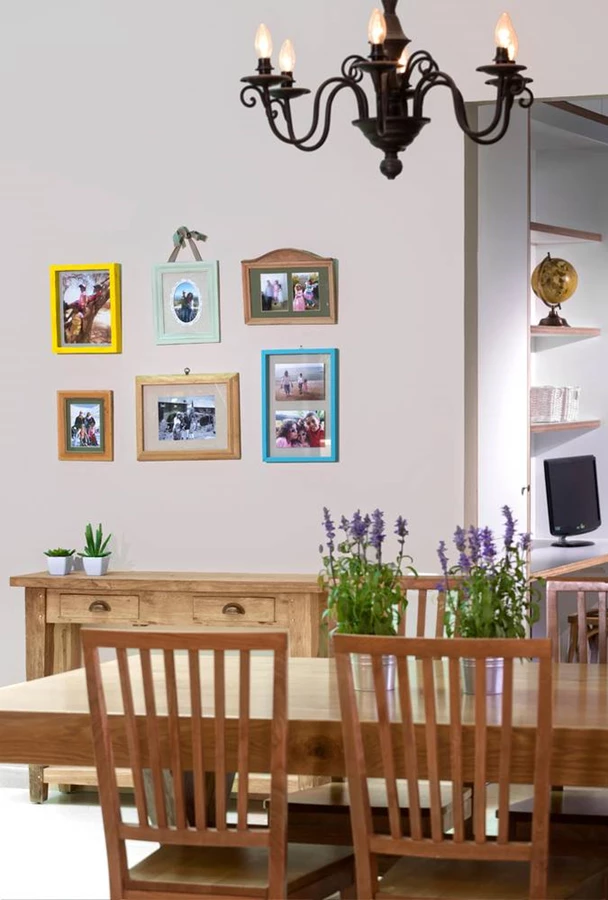 קיר המדרגות הגדול שעוטף גם את הכניסה לחדר המשפחה נצבע בגוון מוקה, ועליו נתלו תמונות נתונות במסגרות וינטאג' המנציחות חוויות של בני המשפחה מטיולים משותפים כמוטיב אינטימי חמים בעל אמירה אישית.