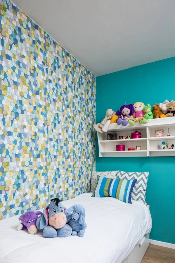 חדרי הבנות: עיצוב שהותאם להעדפותיהן תוך שילוב טפטים וטקסטילים צבעוניים. טפטים ווילונות: "טאפיס".
