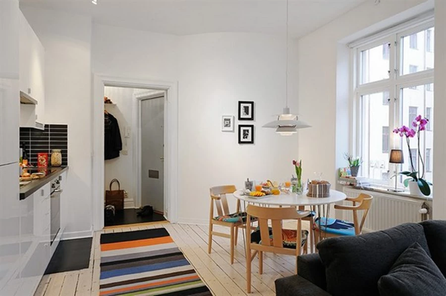 על אף המידות המיניאטוריות, זכה שטח הדירה (40 מ"ר) לטיפול עומק פונקציונאלי ואסתטי. הדירה מתבססת על חדר אחד הכולל מחיצה נמוכה היוצרת גומחה ומהווה את אזור השינה, וחדר אמבט. הסלון הוא לב הדירה המרהיבה הזאת. המרחב הפתוח המחבר את הסלון למטבח ולמעשה מציב אותם בחלל אחד הופך אותו מושלם לבילוי ולאירוח ומעניק תחושת מרחב. תחושת המרחב מתעצמת גם כתוצאה מהחלון הרחב שבמטבח השוטף באור את הדירה כולה. פינת אוכל עשויה עץ ומשרד ביתי מאובזר היטב מעניקים טאץ' עיצובי המכניס אופי רב לדירה. המחיצה בחלל יוצרת מתחם שינה בו ממוקמת מיטה עם 3 מגירות רחבות המעניקות פתרונות אחסון נוחים ונגישים. הדירה הזאת משלבת את כל מה שדרוש לדירת חלומות- תכנון ארכיטקטוני מעולה עם השקעה נכונה בעיצוב פנים המבטא טעם משובח.
