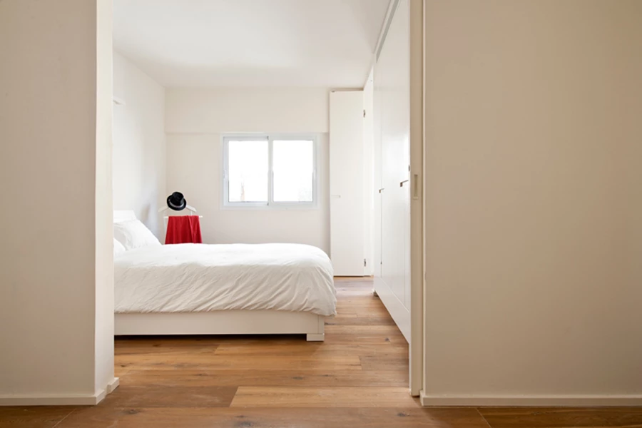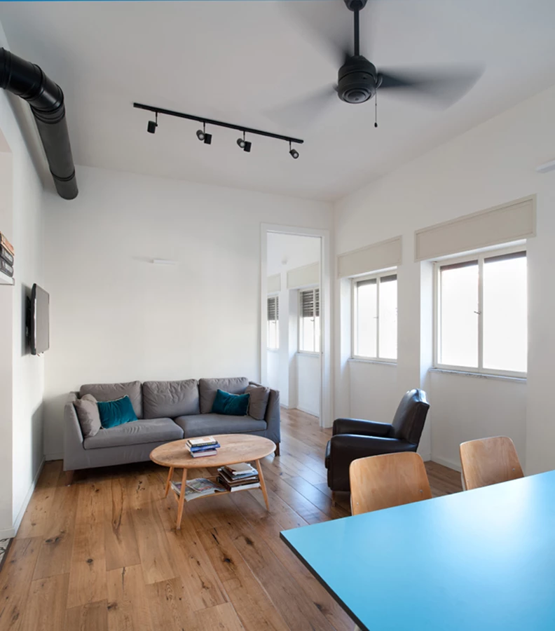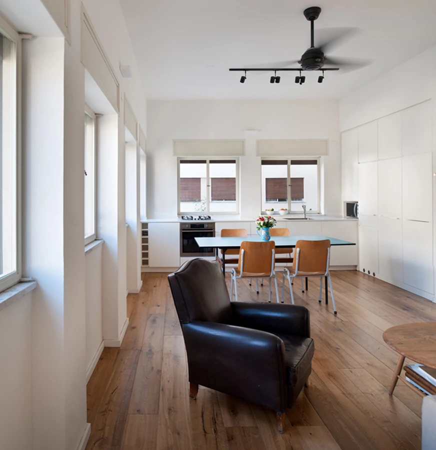 דירה השוכנת בבניין לשימור מתקופת "הבאוהאוס" שעבר גם הוא שיפוץ חיצוני תחת חוקי שימור מחמירים. בעלי הדירה ביקשו למקסם את הפוטנציאל של החלל כך שיהפוך את הדירה אטרקטיבית להשכרה עבור משפחה צעירה. הדרישה העיקרית היתה להגדיל את מספר החדרים בדירה מ-2 ל-3.