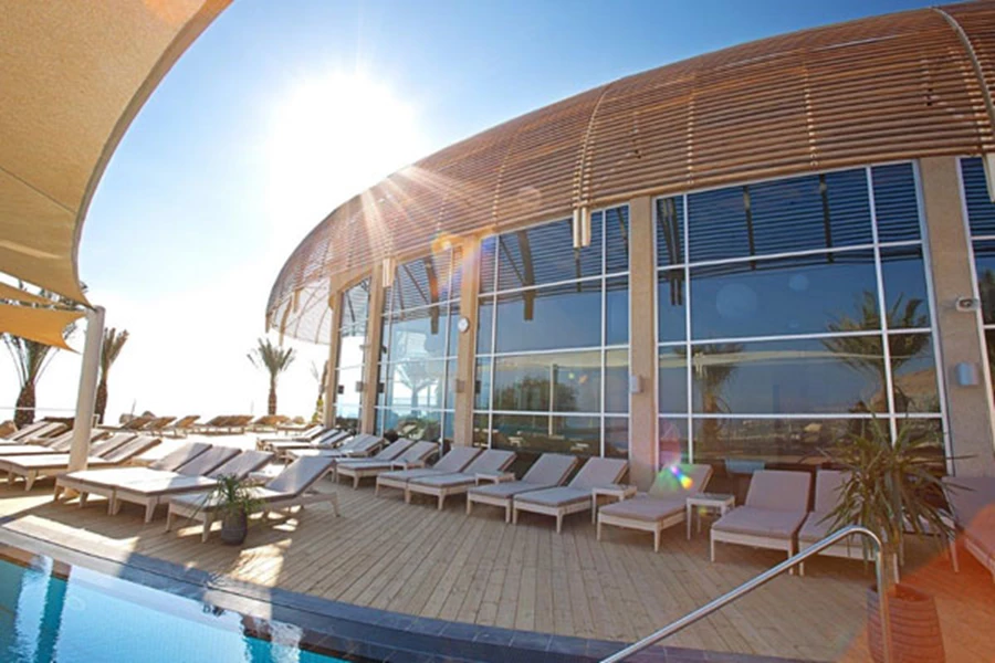 למצוא מקומות ישיבה ורביצה, תוך התייחסות לאקלים של חום וקור קיצוניים. רציתי שהאדם יחווה את ההרגשה של הטופוגרפיה, קו הגובה , הקימור של הגבעה הצופה לנוף המשתנה של ההרים, המדבר והים. העיצוב בעין גדי מהדהד את הרכות הנופית. בנקודה בה מיקמתי את המבנה מקבל הצופה בבת אחת את התמונה העוצמתית של הנקיק, מתקבלת פתיחה לנוף והמבנה משתלב בקצב הגלים של הגבעות הרכות מסביב, בגלים שהמבנה יוצר ובפנים גם בשקיפות אל הים. ברכות הספא מעוצבות בצורה לא רגולרית ללא שפת בריכה, המים מפולסים במישור אחד עם הנוף בחוץ, באופן שנדמה כי הן מתחברות לים המלח. הבריכה נפתחת מול עץ ערבה, שמאחריו נפתחים ים המלח והרי אדום. הברכה היא האלמנט החדש שמאפשר לך לחוות מה שקיים שם מליוני שנים.