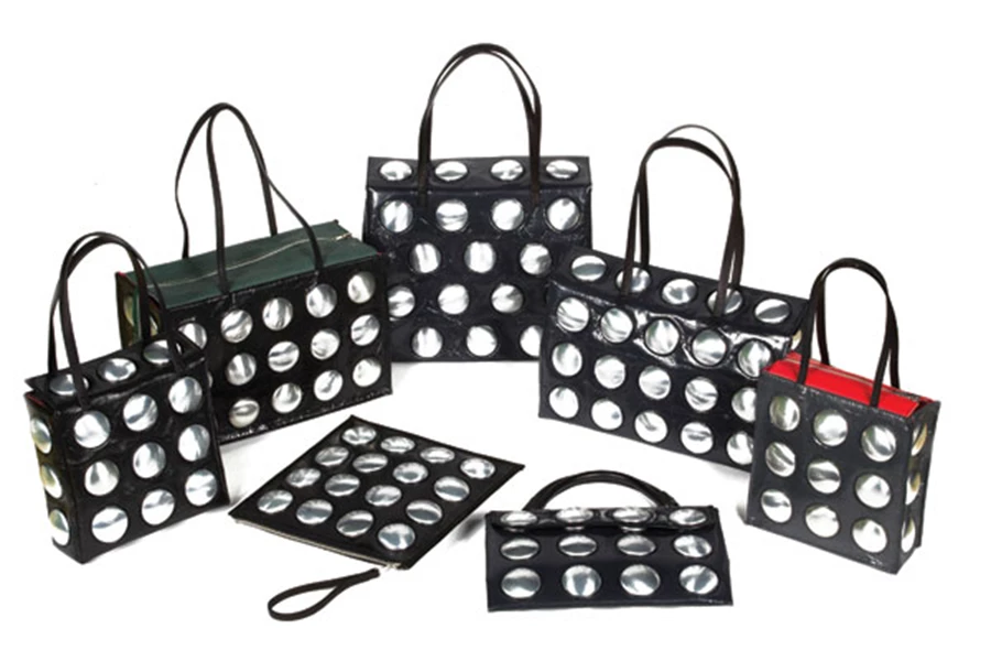 רשימת המרכיבים של פריטי האופנה נרתמת למהפכה האקו-סביבתית של התקופה ועושה שימוש מחודש בחומרי גלם ובאובייקטים קיימים, הכוללים תמהיל מרענן ומפתיע של שאריות, פסולת ואשפה. כך, לדוגמה, שרידי פרווה ונאפה, עור משומש ופקקי-מכסי בקבוקים מתמחזרים לסדרת התיקים Pyramid, ואשפת פלסטיק, שאריות בדי ‘טכנו’ פגומים ותחתיות שתייה משומשות משמשים כחומר גלם במראה עתידני בקולקציית התיקים המטאלית Space Waste. תיקים אחרים, כמו בקו Dragon, עשויים מאריג שנתפר משאריות עץ מפירוק, חלקי מגירות וינטאג’ ושרידי בד ועור, ובקו התכשיטים של המותג נכללים גם צמידי-צמיגי גומי מצעצועים.