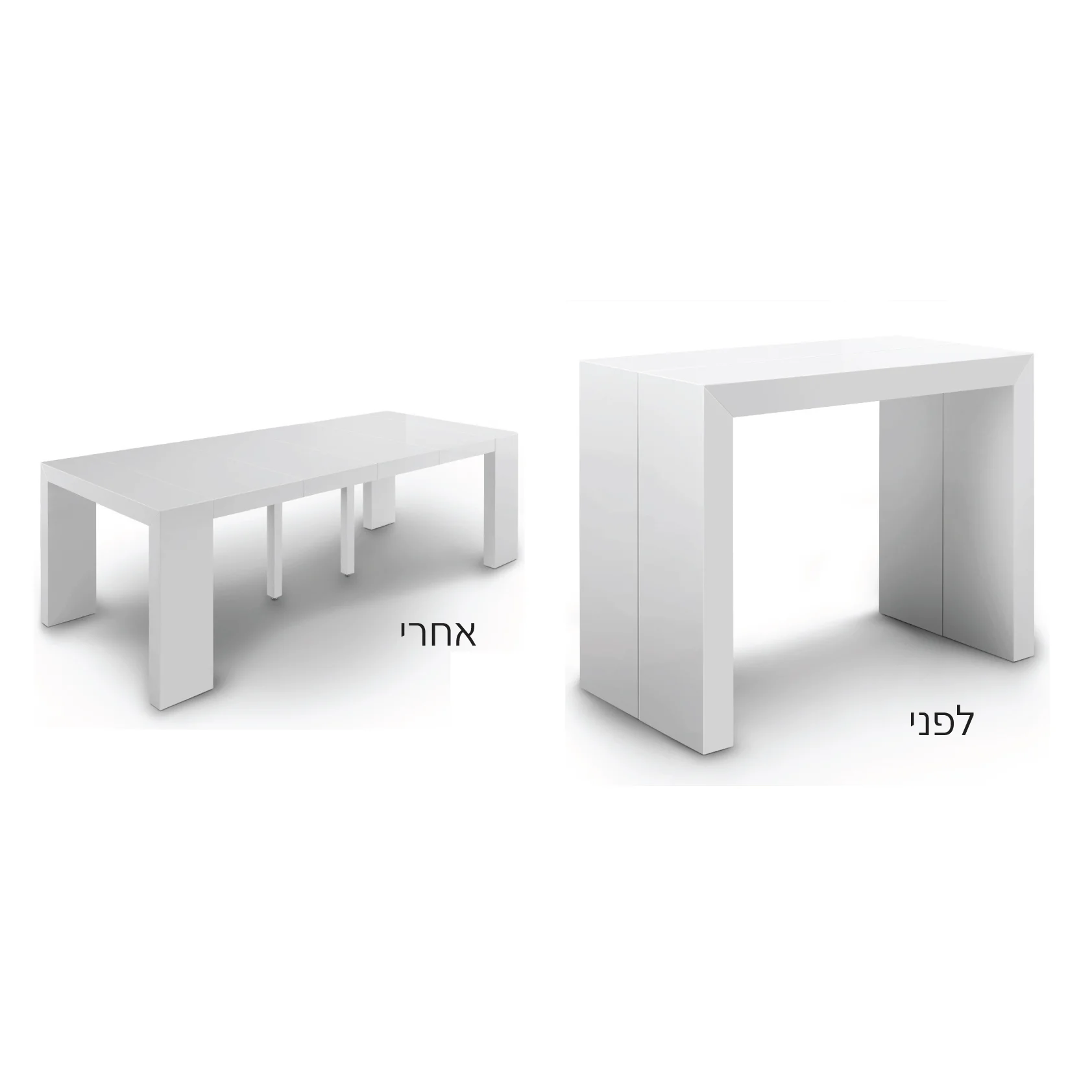 שולחן מתכוונן דגם carrera - משמש כפינת אוכל ל4-6 סועדים או כשולחן סלוני נמוך ומעוצב במחיר של 1,390 ₪, הדגם הגדול יותר נפתח לכ 10 סועדים/מחיר 1,790 ₪.