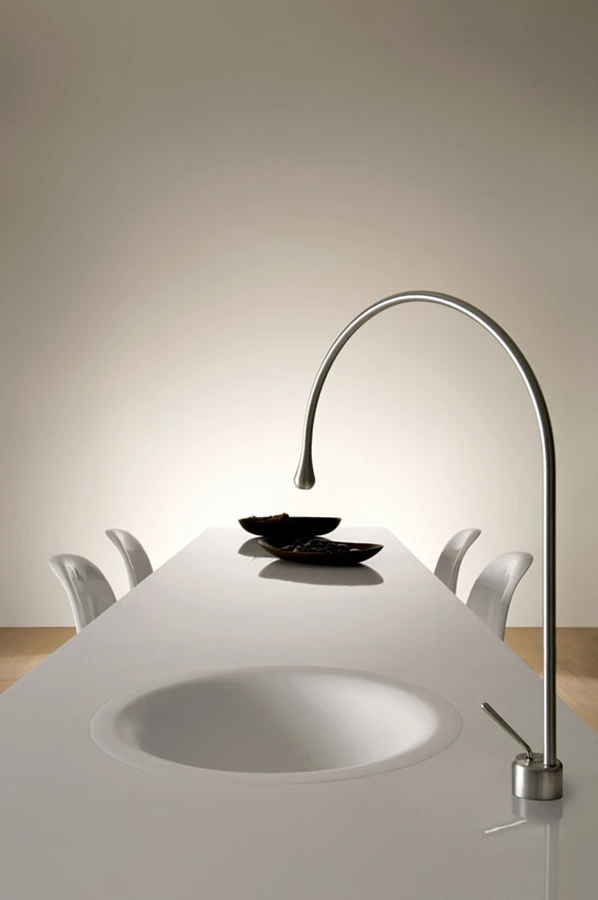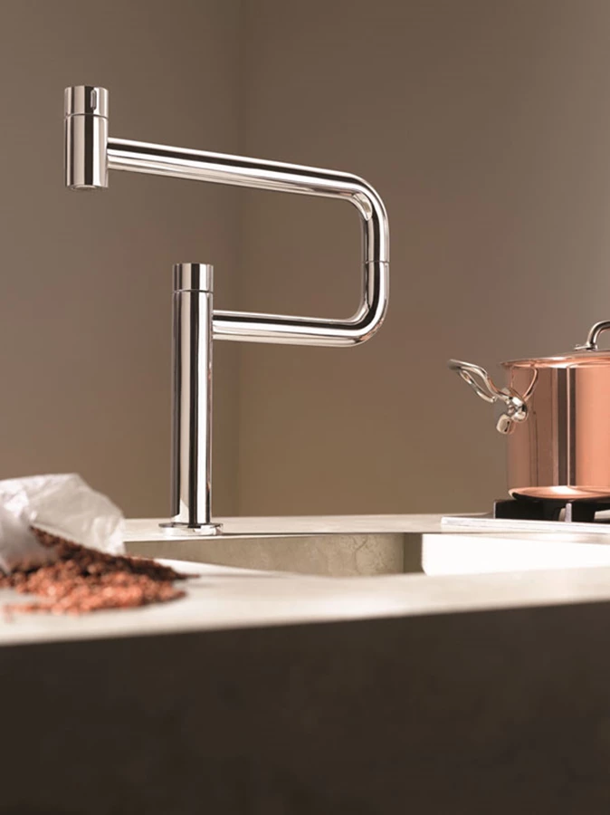 שילוב מושלם לחללים פתוחים - ברז נובע משולחן האוכל או האי במרחב המטבח. ברזי חברת 'Gessi' יכולים להיות מותקנים ישירות ממשטח שאינו מחובר בהכרח לקיר וליצור חזות בעלת אסתטיקה ייחודית.
