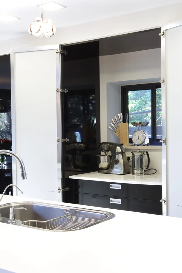 המטבח הטכנולוגי מבית חברת "רגבה" ,מגדיר מחדש את המונח עיצוב חכם לבית ומשלב גם פונקציונאליות וגם עיצוב נקי בסגנון חדשני המצניע את פונקציות העבודה. כך, משטחה העליון והנקי של יחידת האי מונע באמצעות מנועים חשמליים, מופעל באמצעות שלט אלחוטי, ועם פתיחתו מתגלים כיור תואם עשוי מאבן קיסר, וברז המגיח מעלה /נבלע בתוך היחידה בלחיצת כפתור. בנוסף, גם חזית הארונות הגבוהים מצניעה בתוכה מטבחון הכולל מקרר, בר ומזווה, שקיומם נסתר מאחורי דלתות אבן קיסר מרשימות הנעות על מסילות מיוחדות שמותאמות למשקלן ומבטיחות תנועה קלה וחלקה.