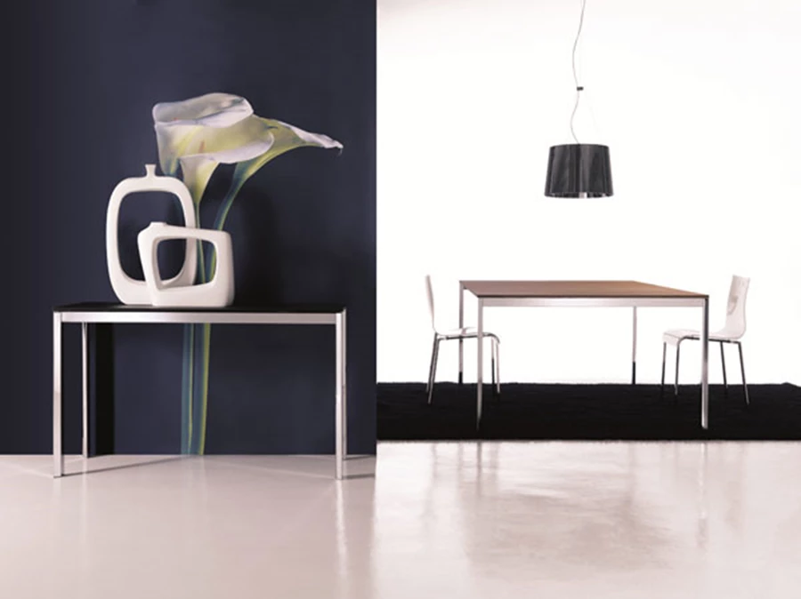 מבית חברת "מילאנו בדינג": קונסולה מינימליסטית voila בעיצוב סטודיו ozeta למותג Ozzio שהופכת במשיכה אחת קלה לשולחן אוכל לתריסר סועדים. מסגרת המתכת הדקיקה של הקונסולה ניתנת לפתיחה במגוון גדלים החל מ 52 ס"מ ועד אורך של 180 ס"מ, והעיצוב מבוסס על מערכת פרופילים טלסקופית יציבה וקלה לפתיחה, רגלים מוסתרות במסגרת הקונסולה נפתחות בעת ההארכה ומאפשרות לארח בנדיבות מסביב לשולחן. הקונסולה החדשה המצטרפת למבחר רהיטים משתנים בעלי מספר שימושים, ומובילה את הקונספט של המותג צעד אחד קדימה עם טווח גדול יותר של מידות, גימורים וכמובן עיצוב עכשווי, משתנה וחוסך מקום בדירות הצפופות בכרך האורבני.