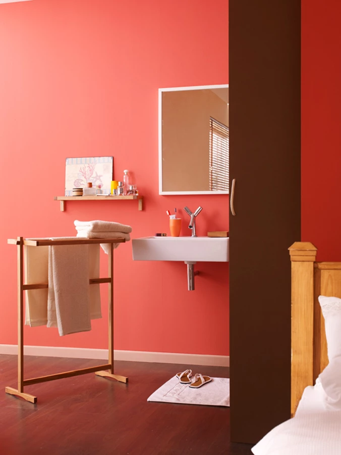 במרחב חדר הרחצה והשירותים ניתן לשלב צביעה וחיפוי באמצעות טייחים, במקום או בנוסף לחיפוי הקרמיקה המסורתי. חשוב לוודא שמדובר על צבעים/טייחים עמידים בפני רטיבות, בדרך כלל טיח מינראלי, המתאים גם לסביבת החוץ ולפיכך גם לסביבת פנים רטובה. חומרים אלה ניתן ליישם במגוון צורות אשר מאפשרות ליצור טקסטורות קיר מעניינות. שימוש כזה יתאים, בדרך כלל, לחללים בהם מבקשים ליצור אווירה כפרית ו/או אווירה צעירה.