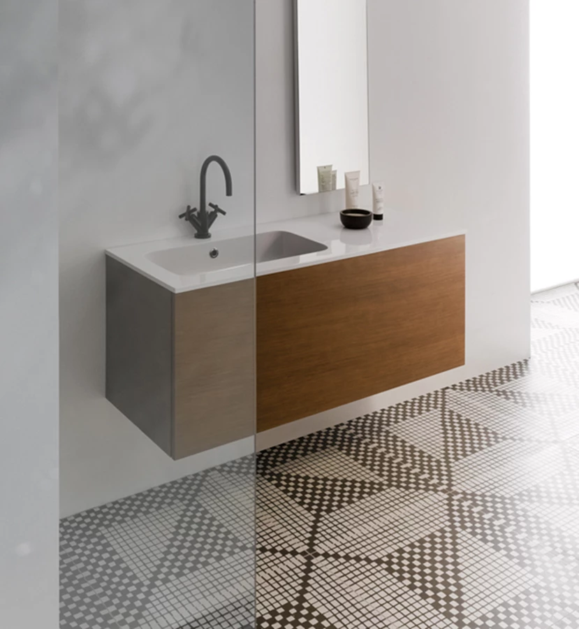 שילוב קוריאן בחיפוי קירות, במשטחים, בכיורים ואמבטיות בחדר הרחצה. רשת 'רגבה'.גודל