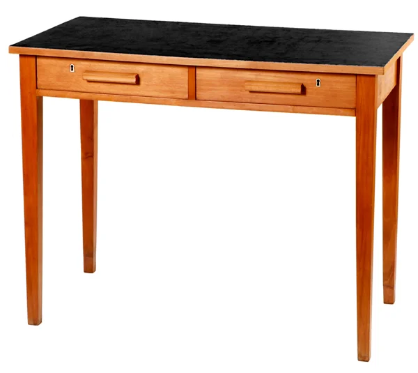 שולחן כתיבה משנות ה- 50, עשוי עץ בוק עם פלטה עליונה מפורמייקה. חנות 'Vintage'. שולחן כתיבה כאן ועכשיו