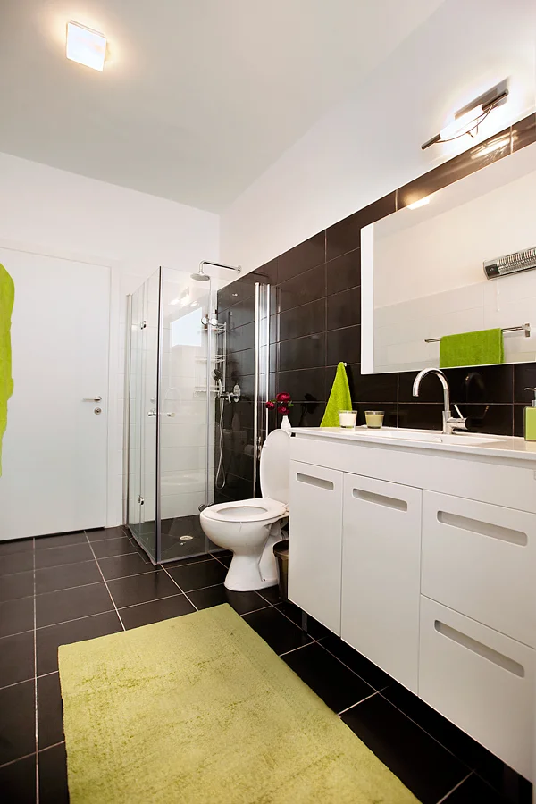חדר הרחצה: מרווח ומעוצב בקפידה.