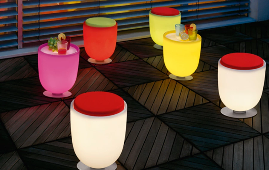 אחד החידושים המעניינים בתחום תאורת החוץ הוא שימוש בתאורה כחלק אינטגרלי ומשולב בפריטי הריהוט: שרפרפים, הדומים, שולחנות, מכלי צמחייה, דלפקי בר, כיסאות ועוד, הכוללים תאורה פנימית והופכים לפסלים מוארים בסביבת החוץ.