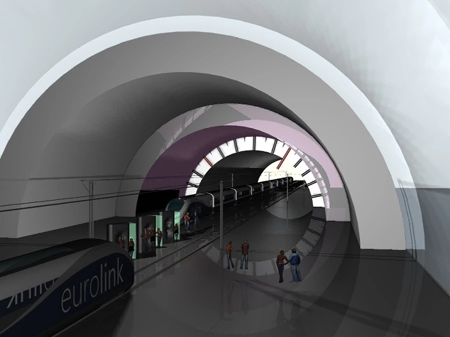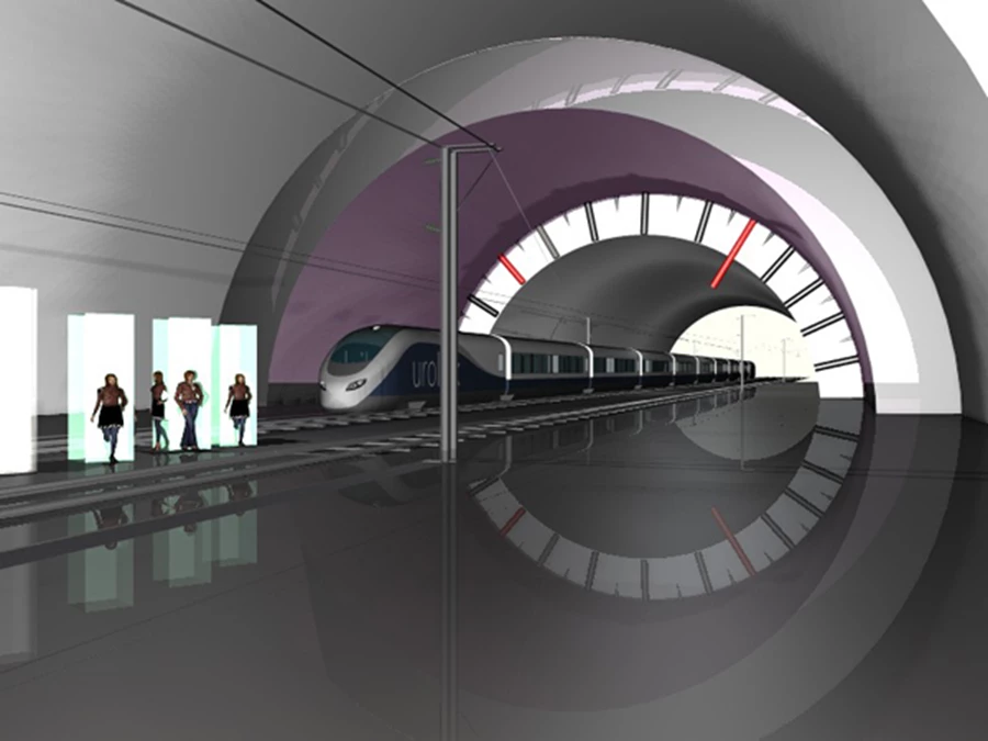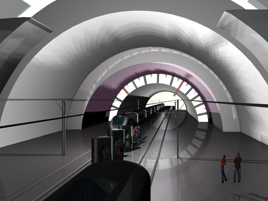 התחנה מעוצבת כמנהרה בתוך מנהרה אשר מצופות בציפוי אקרילי והריצפה מצופה בבטון מוחלק ומבריק היוצרת השתקפות של המנהרות ונותנת הרגשה כאילו בנויה מגלילים.