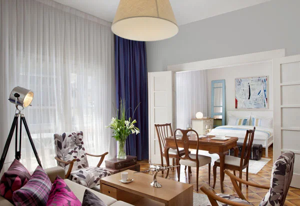 במעבר חד מרוח החלל: עיצוב ענייני ועכשווי בחדר המשמש כמשרד. כהאן: "נכון, השולחן הוא עכשווי יותר, ולמעשה, יש פה אפילו מספר פריטים מאיקאה, וכל עוד הם משתלבים בהרמוניה ורוח הדברים נשמרת, זה עובד". הצבעוניות שמככבת בפריטי הטקסטיל- ריפודים ווילונות- עשירה, מורכבת מגווני בורדו, סגול, ורוד, חום ואפור, ומערבת דוגמאות שונות, אך בה בעת, למרות ריבוי הגוונים, מייצרת פלטת צבע רגועה שמסברת את העין ומשרה חמימות נעימה. אף חדר השינה מייצג את חיבתו של כהאן לפריטים עם טעם של פעם, וכך, לדוגמה, על אחד הקירות מושענת דלת ישנה שהפכה למראה ונצבעה בתכול, בחזית המיטה ניצבת תיבת משאות ישנה ולצדו כורסה בטעם של פעם שרופדה בבד פסים צבעוני. את הקירות מעטרות תמונות, חלקן של ארז ברוכי, שותפו של כהאן במשרד "ברוכי-כהאן אדריכלים", שלפי שעה ממוקם כאן בדירתו של כהאן, ומטבע הדברים שונה באופיו המשרדי מחללי הדירה האחרים. חדרי השינה והמגורים חולקים מרפסת הפונה לרחוב, וכך, כשיוצאים אליה, לצד אווירת העבר שנסוכה בדירה, שוב חוזרות וצפות מילות שירו של חפר " ...בלקון אל הרחוב שר את סרצה ....הזמן נרדם, אל נא אל תעירנו".